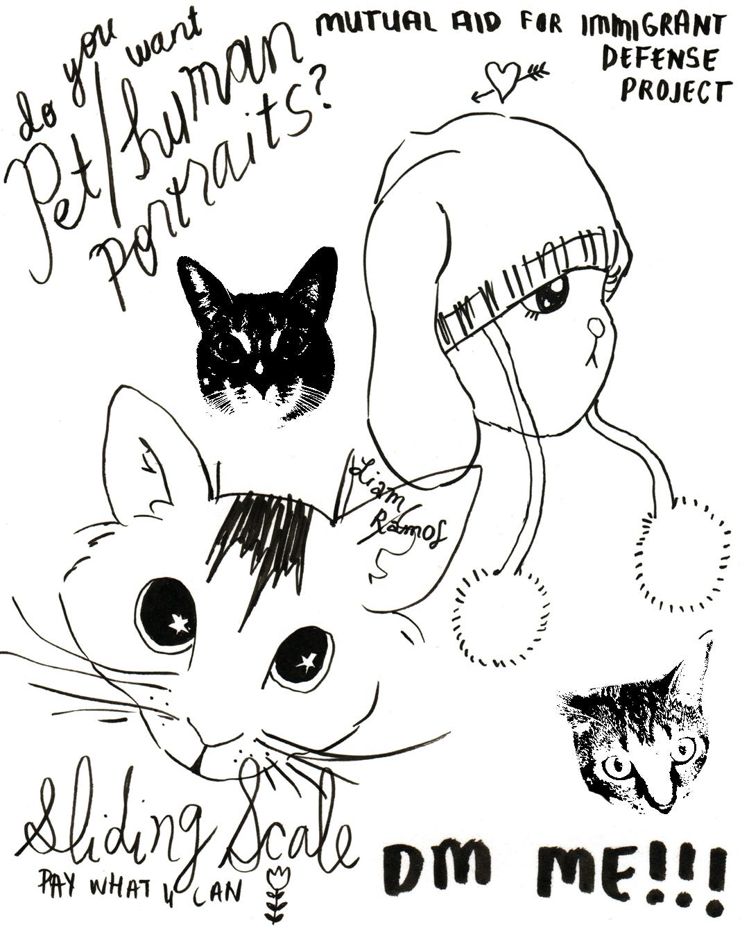 hi guys. i’m making quick pet (or human) portraits (or whatever you want me to draw) for the immigration defense project. more info here -